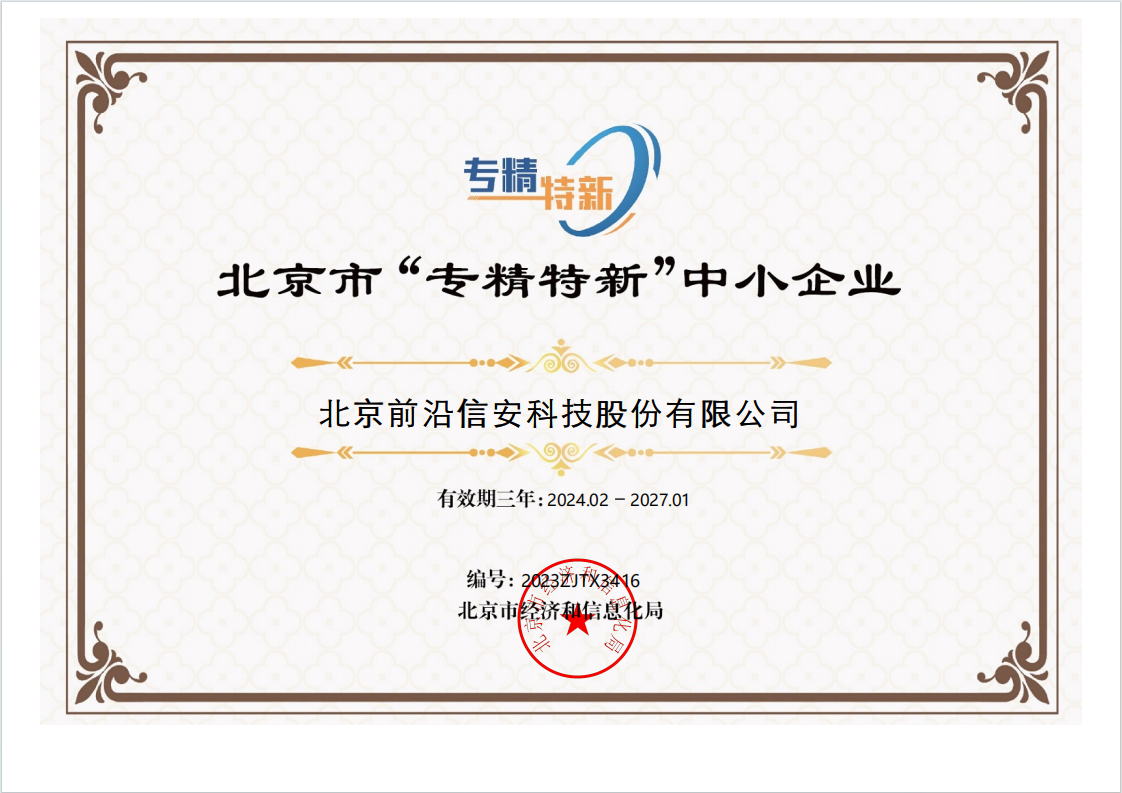 北京軟件和信息服務業協會”軟件產品證書 “--前沿數據防泄漏系統